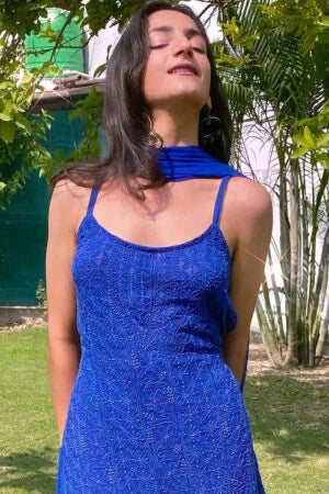 BEAUTIFUL BLUE COLORED EMBROIDERY WORKED KURTA SET WITH