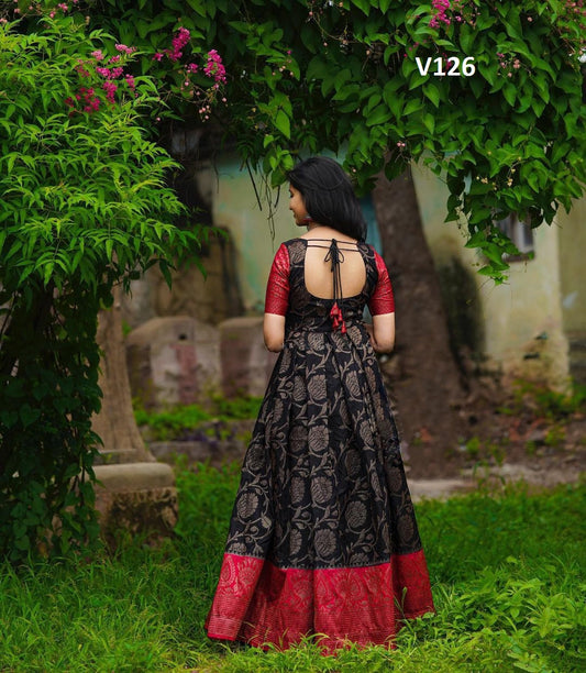 BLACK COLORED JACQUARD GOWN WITH RED JACQUARD BORDER