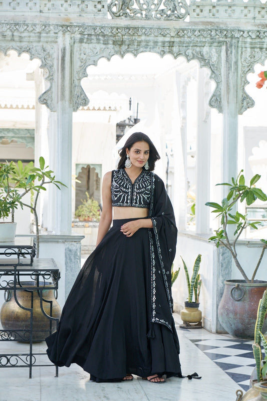 Black Sequins Embroidered Chiffon Lehenga Choli